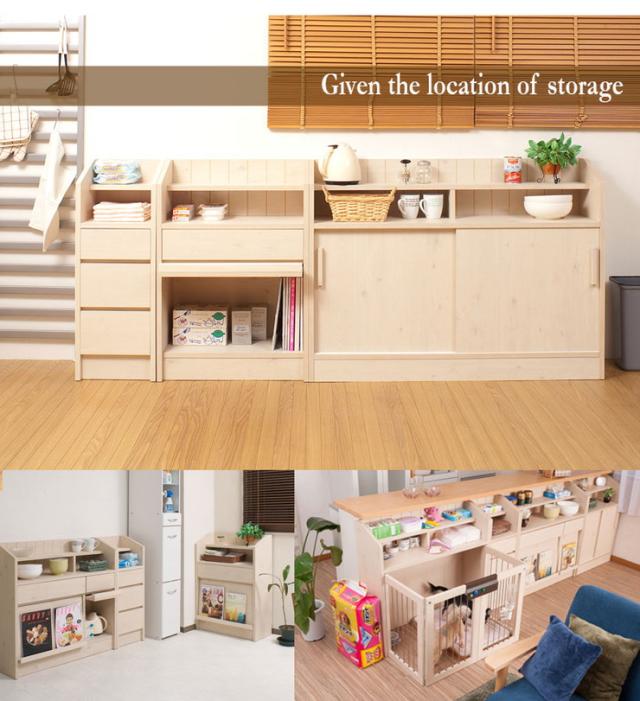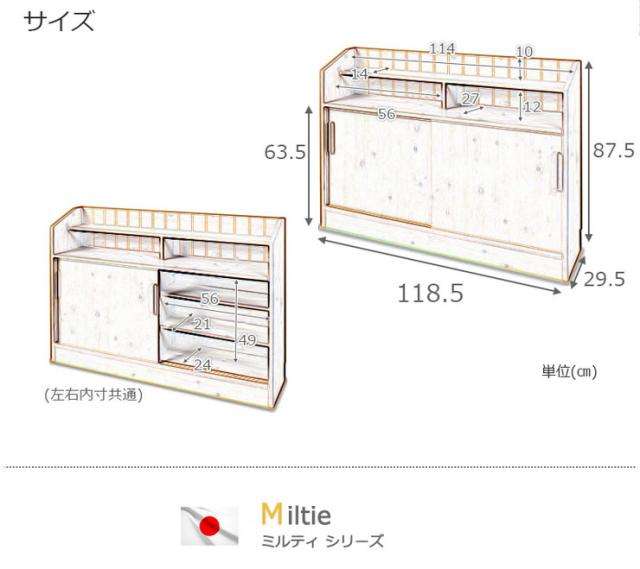 日本製 完成品 引き戸式 キッチン カウンター下 収納 幅118.5 キッチンカウンター レンジ台 国産 カウンター ラック 食器棚 おしゃれ 北欧【送料無料】