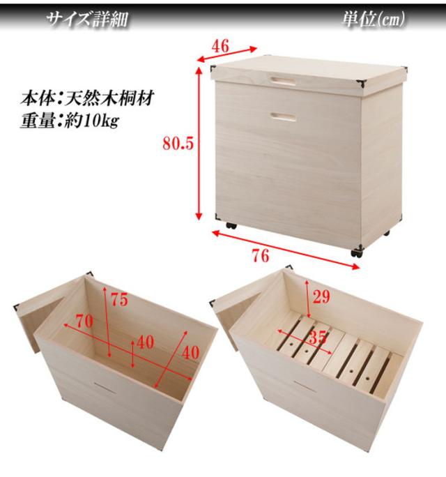 日本製 押入れ収納 幅76 奥行き46 深型 桐ケース 収納 ボックス 収納箱 雛人形 収納ケース キャスター付き 多目的 国産 天然木 木製 押入れ(代引不可)【送料無料】