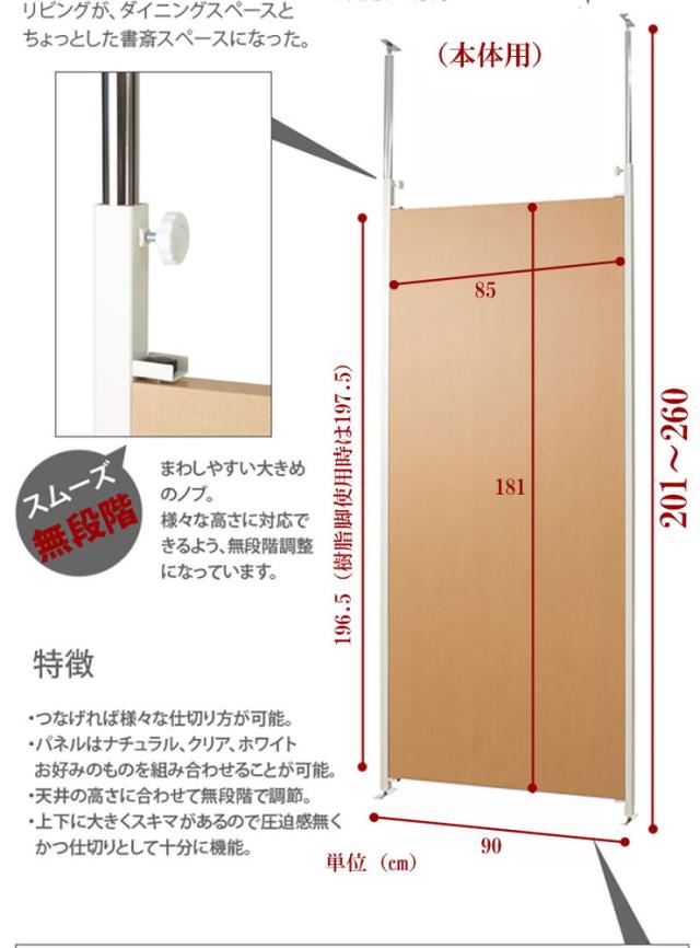 日本製 つっぱり パーテーション 国産 幅90cm 本体 ナチュラル オフィス 在宅 シンプル 事務所 会議室 突っ張り 衝立 間仕切り 国産(代引不可)【送料無料】