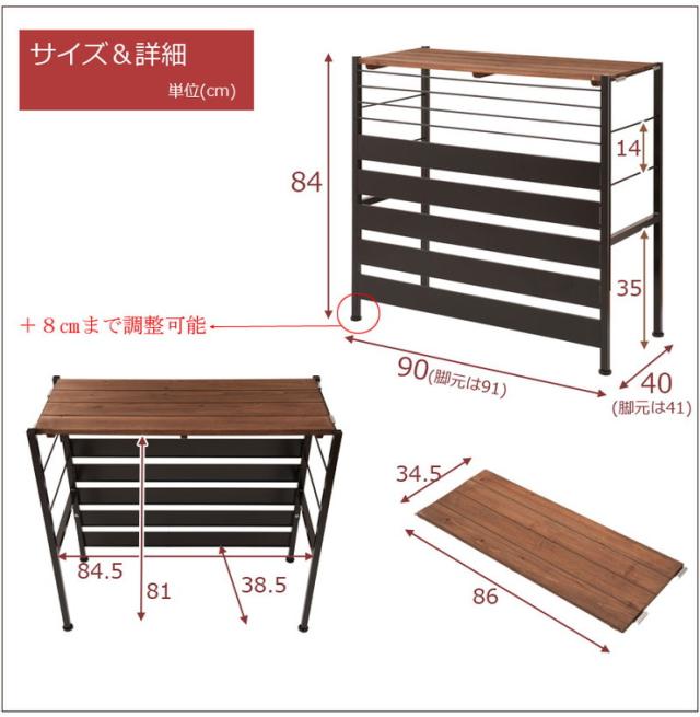 ■商品サイズ/本体:(約)幅90(アジャスター含む91)×奥行40(アジャスター含む41)×高さ84(アジャスター使用時92)cm