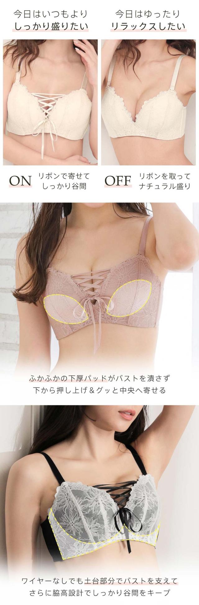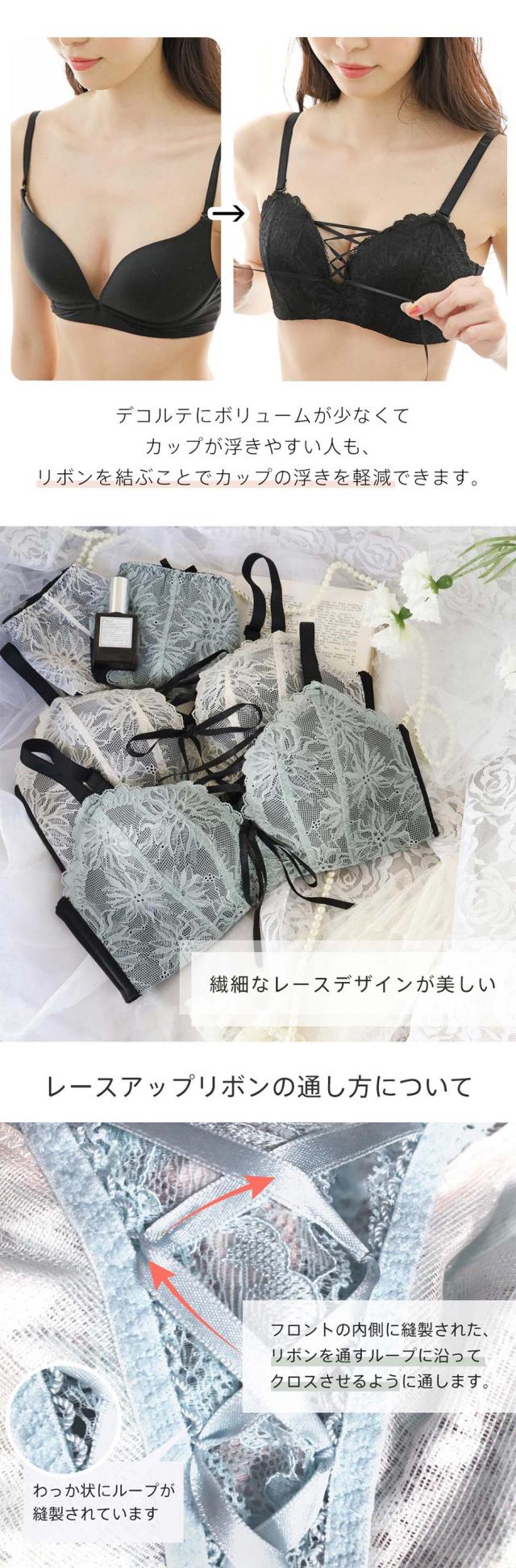 ●商品名:レースアップ ノンワイヤー 超盛ブラ(R) ブラジャー&ショーツ