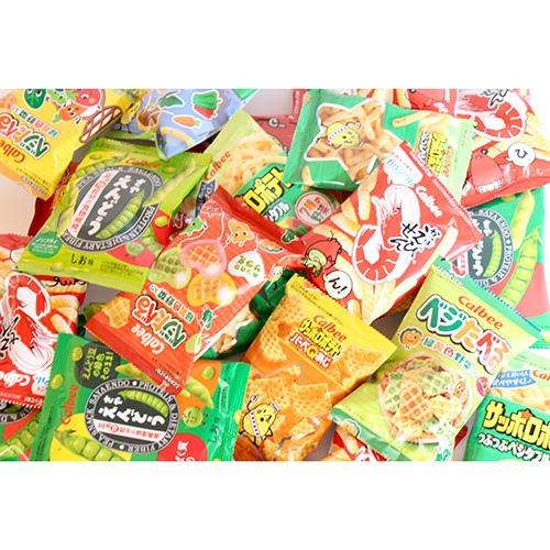 ※セット内容例:かっぱえびせん 12g×4コ、サッポロポテトつぶつぶベジタブル 9g×4コ、サッポロポテトバーベQあじ 9g×4コ、さやえんどう しお味 12g×4コ、ベジたべる あっさりサラダ味 10g×4コ