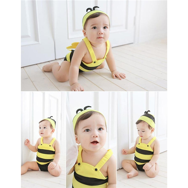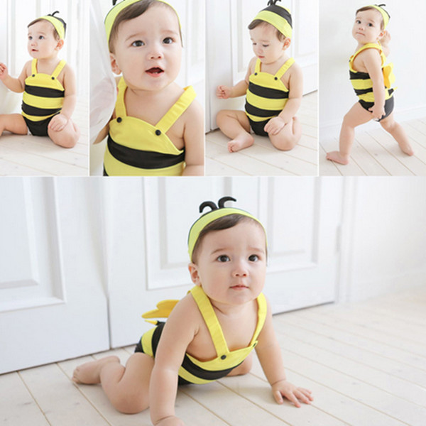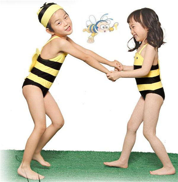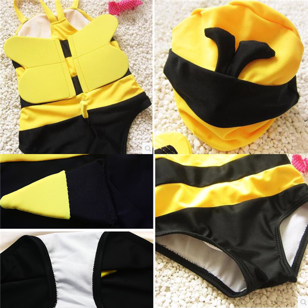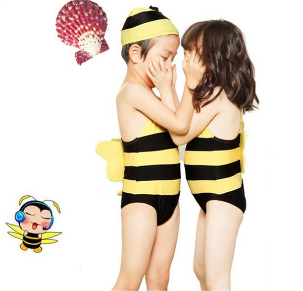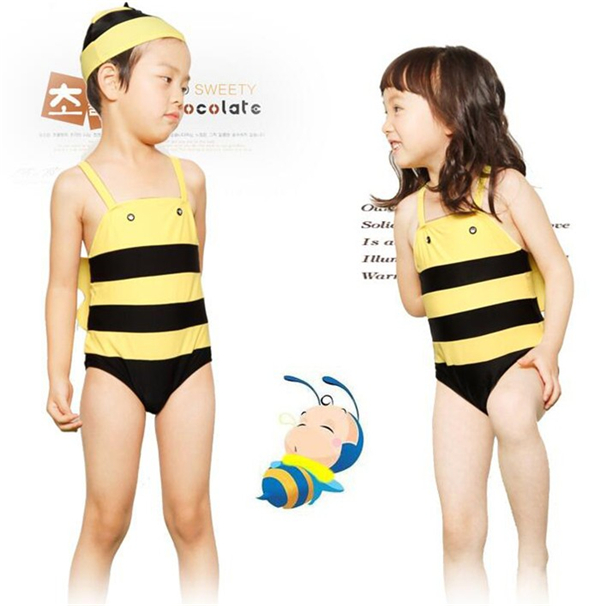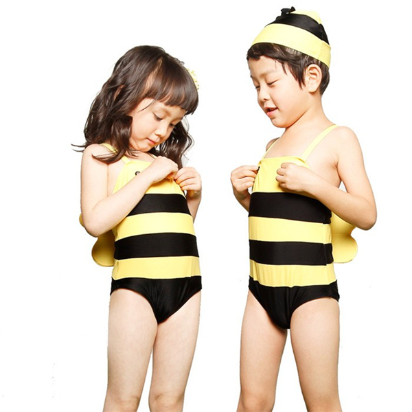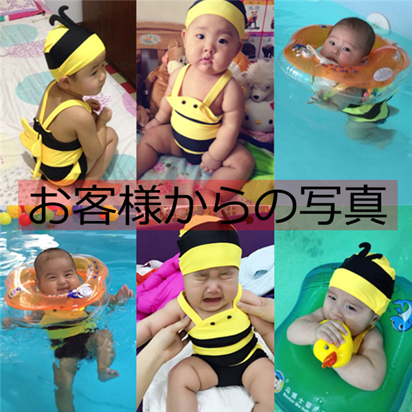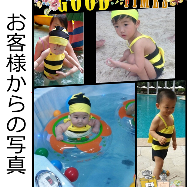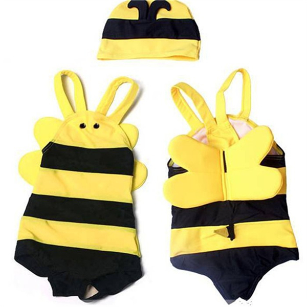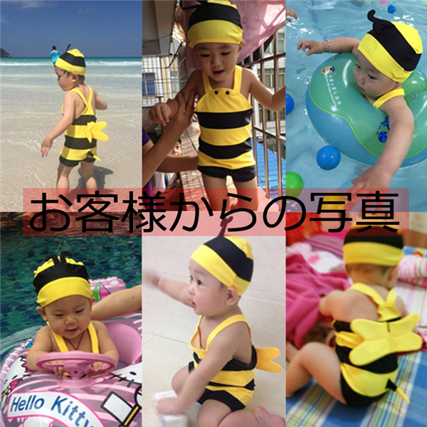 子供水着 男の子 女の子通用 アニマル柄 帽子付き 連体式水着 子ども 男児 幼児 キッズ水着 ジュニア ボーイ ハチ 蜂 ミツバチ DM便