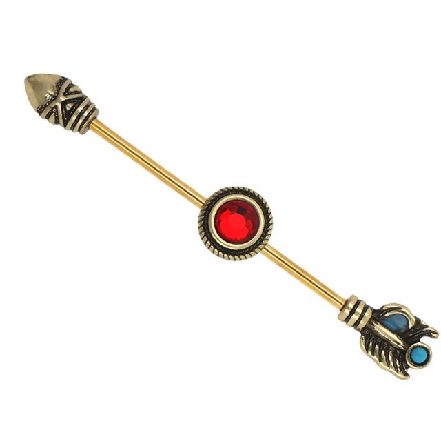 [ 14G インダストリアル 長い ストレートバーベル] ゴッドオブサンアロー ボディピアス 14ゲージ ボディーピアス メガバーベル メンズ レディース ロングバーベル 軟骨 つなぐ サージカルステンレス316L 金色 矢じり 弓矢 赤色 ジルコニア レッド ジュエル トルコ石