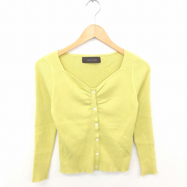 【中古】ジュエルチェンジズ アローズ カーディガン ニット 無地 綿 コットン ウール混 長袖 黄緑 ライトグリーン