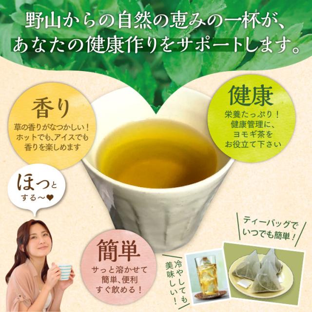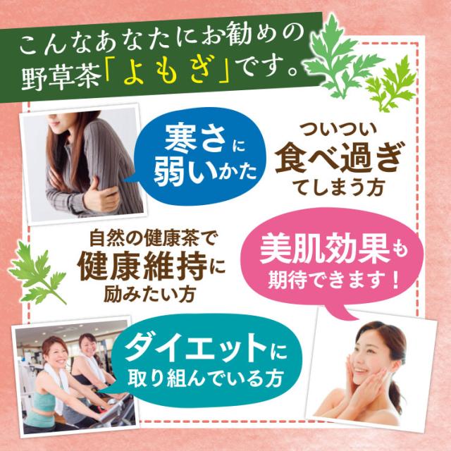 ホットでも冷やしてもどうぞ!夏場は冷やして、寒い冬場はホットな「よもぎ茶」で健康管理にお役立て下さい。お湯を注ぐだけ簡単便利。