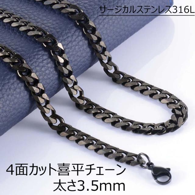 [サージカルステンレス316L製 ネックレスチェーン] 4面カット喜平ブラックチェーン (太さ:3.5mm) 太め 太い ステンレスチェーン チョーカー 首飾り メンズ レディース 人気 プレゼント ギフト 男の人 女の人 銀色 シルバー 3.5ミリ おしゃれ 黒色 鎖 クサリ キヘイ