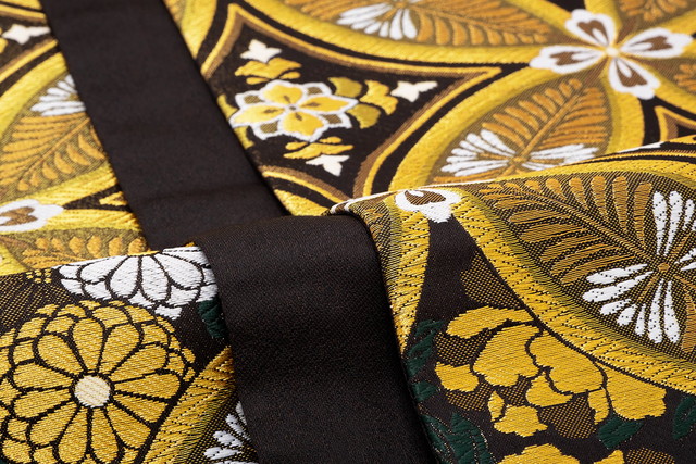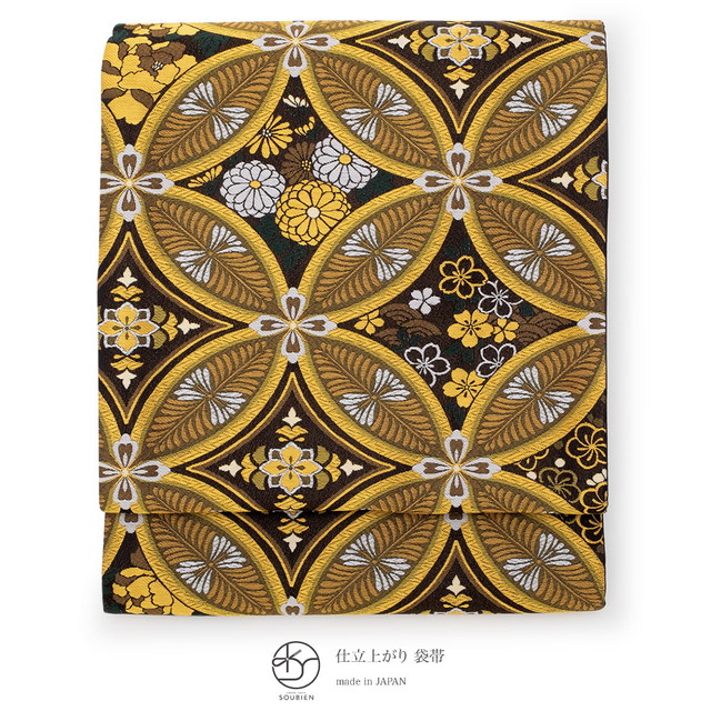 袋帯 フォーマル 振袖用 訪問着用 成人式 小杉織物謹製 黒 ブラック 金色 七宝繋ぎ 菊 桜 牡丹 花 全通柄 仕立て上がり 日本製 送料無料