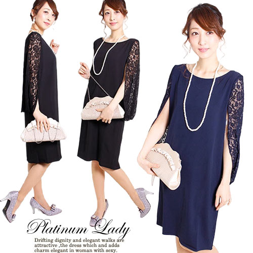 レース袖が印象的なドレス 腕をさり気なくカバーしショールとは違い気にせず腕を動かせます☆ シルエットが綺麗に出ますよ!