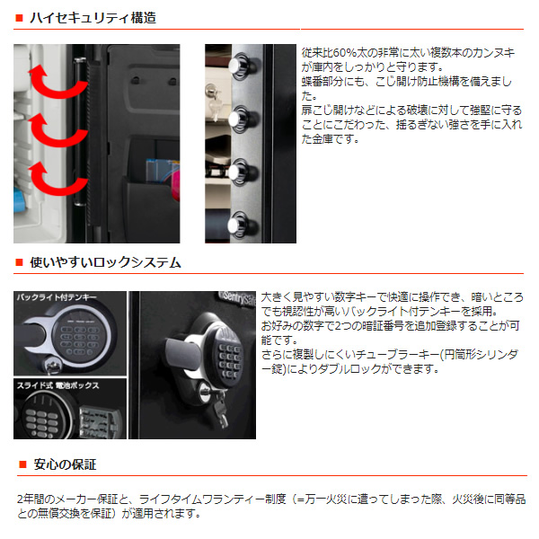 金庫 セントリー日本 Sentry 2時間耐火 耐水 33.6L テンキー式 JTW123GEL