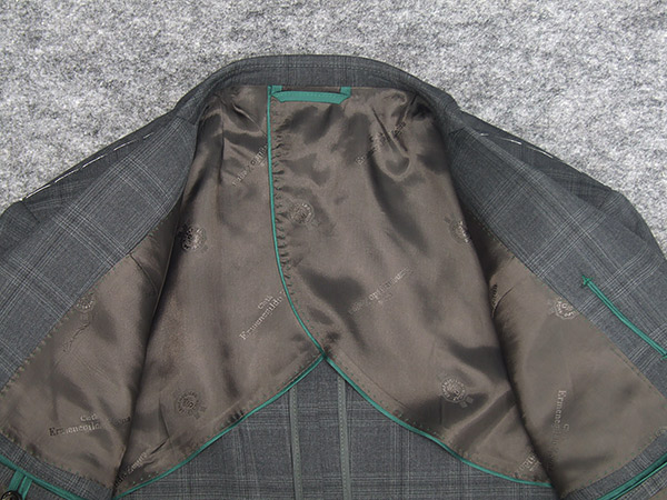 春夏物 グレー系大格子 [Ermenegildo Zegna] ゼニア TROPICAL使用 スタイリッシュ2釦スーツ [A体][AB体] ロゴ入り裏地 EZS82