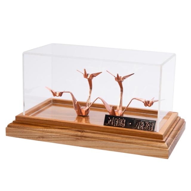 【長寿と平和の象徴である鶴を1枚の銅板からつくりあげました】薄い金属(銅板)で職人が丁寧に折り込んだ折り鶴で6羽の連鶴をつくりました。化粧ケース入りですので玄関棚やリビング、会社のカウンターなどにも置きやすいデザインです。長寿と平和の象徴である「鶴」は、縁起物として贈り物にも大変人気があります。工房おぐにでは、折り紙の連鶴を立体的にし、親鶴の羽と尾、小鶴の羽と尾を繋げ、家族が幸せな雰囲気を大切にして台座にのせケースにおさめました。長寿と平和の象徴である鶴が6羽連なる豪華な印象で、贈り物にも喜ばれています。