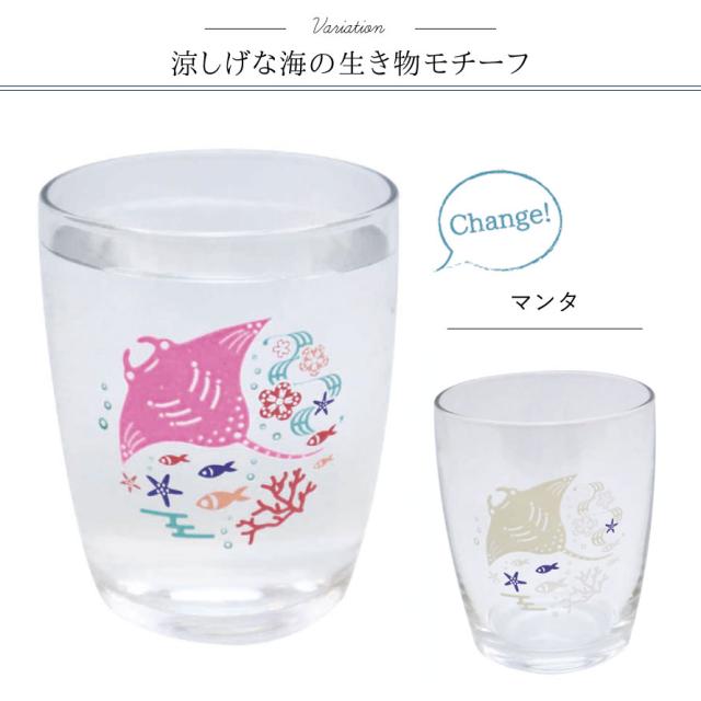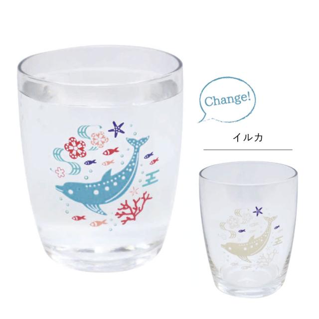 グラス ガラス コップ タンブラー おしゃれ かわいい 色変わりグラス 海の生き物 日本製 ジンベイザメ イルカ ドルフィン カクレクマノミ ウミガメ マンタ 涼し気 涼しげ 夏グラス 夏コップ 水族館 マリングッズ 海 動物