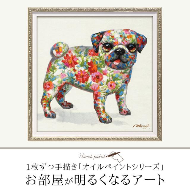 アートパネル 犬 33×33cm 動物 モダン 玄関 絵 壁 アート パネル インテリア 絵画 額入り 北欧 おしゃれ 壁掛け オイルペイント アート ドッグフラワー S