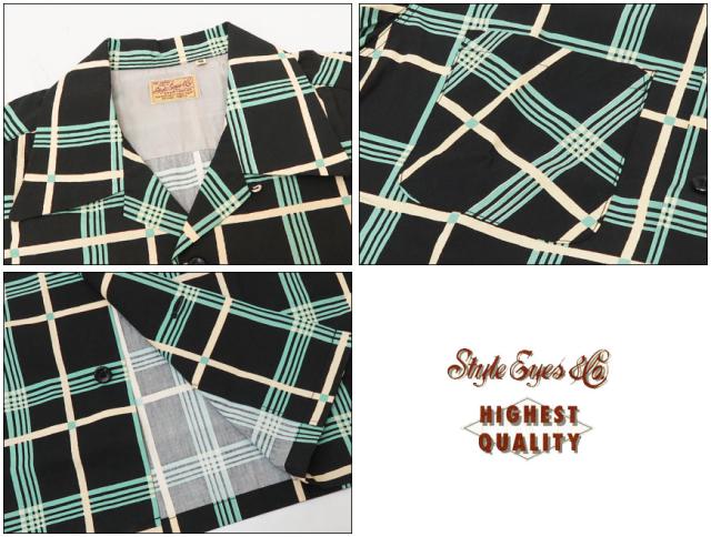 Style Eyes スタイルアイズ 半袖 チェック プリント ブロード コットン オープンカラーシャツ SE38354