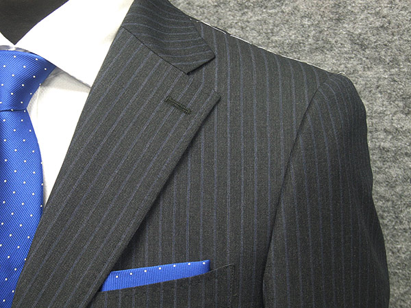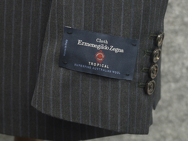 春夏物 濃グレー/縞 ストライプ [Ermenegildo Zegna] ゼニア TROPICAL使用 トレンドスタイル2釦スーツ スリム [A体][AB体] EZD71