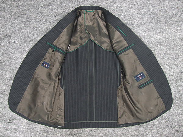 イタリアンクラシコをトレンド風に表現したシャープなフォルムに、ステッチ入りの少し広めのベーシックラペル、コンパクトな肩周り、1タックスリムで膝から裾口にかけて細くなるテーパードパンツが特徴のニュートレンドスタイルのスタイリッシュ(スリム調)モデルです。