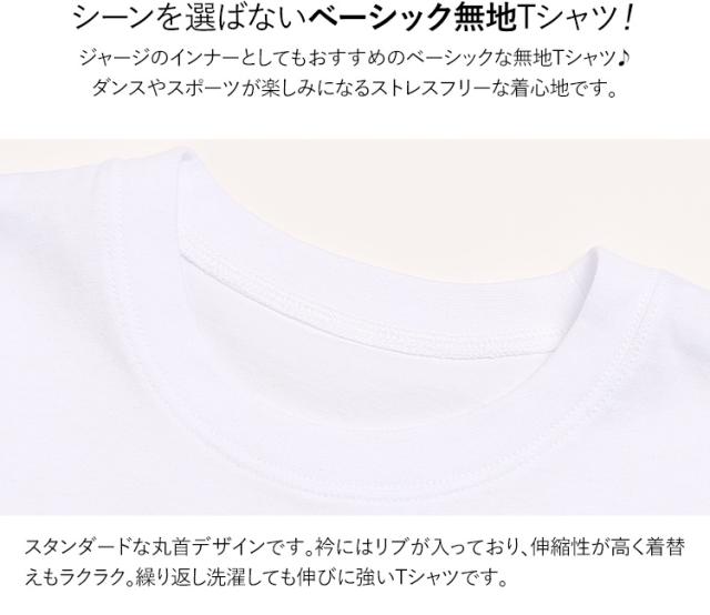 ・ジャージのインナーとしてもおすすめのベーシックな無地Tシャツ♪ダンスやスポーツが楽しみになるストレスフリーな着心地です。林間学校・野外学習やダンスレッスンなど運動スクールの練習着にも大活躍!