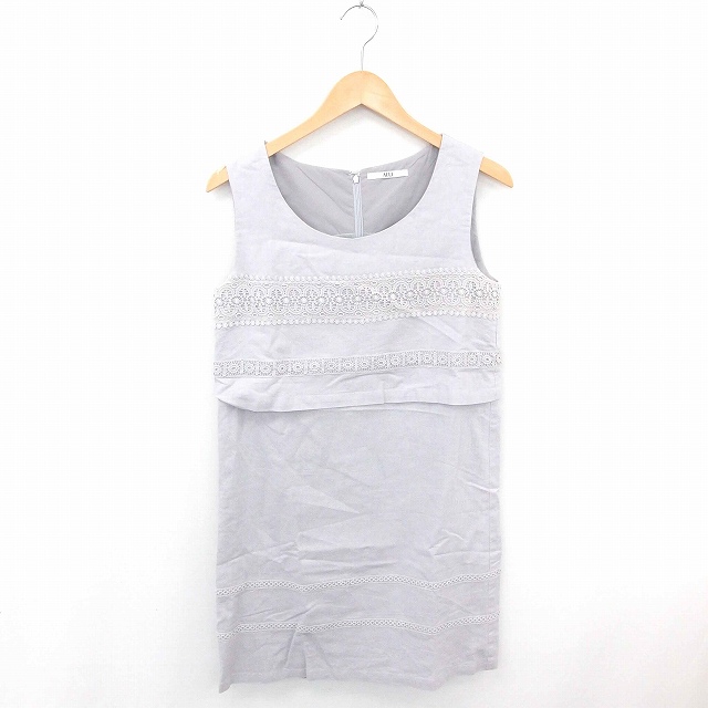 【中古】AULI ワンピース 膝下丈 レース 刺繍 総柄 麻 リネン混 プルオーバー ノースリーブ グレー 灰 /TT31