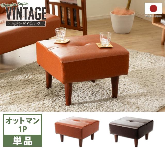 オットマン 単品 合皮 PVC おしゃれ 脚置き カラー 西海岸 和楽 WARAKU ヴィンテージ レトロ スツール 日本製 一人暮らし サイドテーブル 新生活 2020
