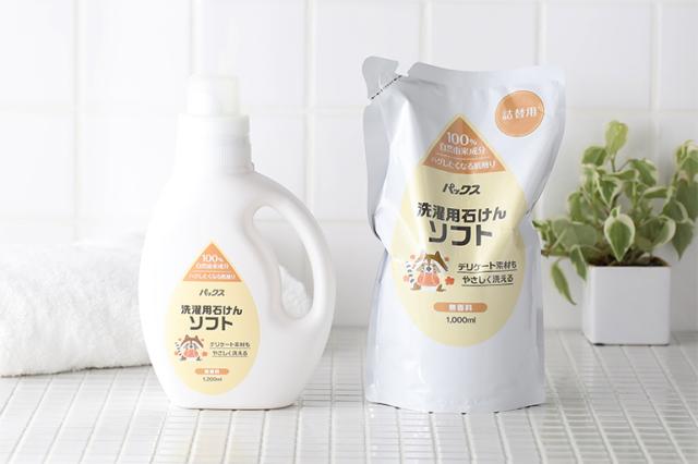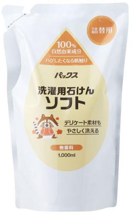 | 【リニューアルのお知らせ】 パックスナチュロン 洗濯用石けんソフト 1,000mlの成分が変更になりました。 成分改良により、「白い付着物の軽減・泡立ちUP・経時劣化臭、経時変色を可能な限り抑制」を実現しました。 価格・容量・パッケージには変更ございません。旧商品をお持ちのお客様は変更点ご確認の上、お買い求めください。 | ||||||