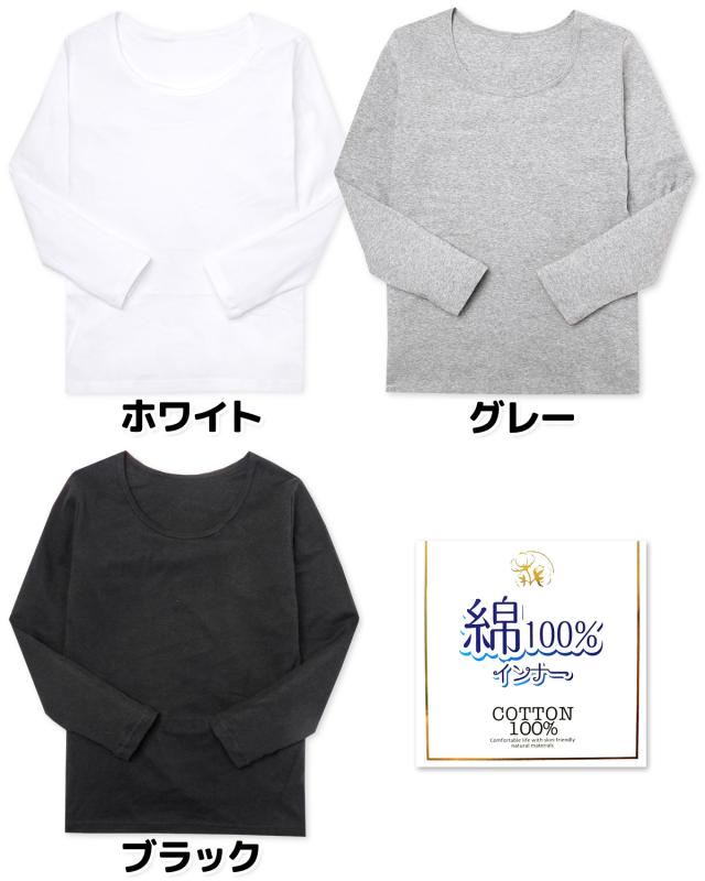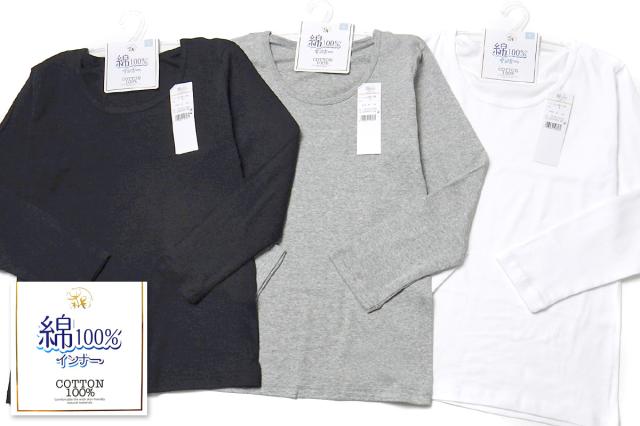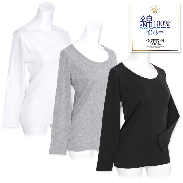 【送料無料】レディース 婦人 肌着 下着 インナー 長袖 Tシャツ 綿100% 天然素材 フライス 伸縮性 M L LL k-0264【メール便対応】