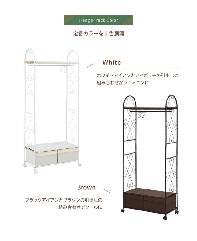 ハンガーラック シンプル モダン ハンガーポール 引き出し付き KHR-3160WH
