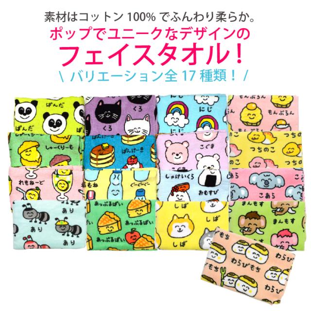【2枚までメール便280円対応】フェイスタオル プリント 17種類 タオル おもしろ雑貨 生活雑貨 34×75cm【キャラクター 遠足 子供用 通園 通学 入学式 キッズタオル】┃