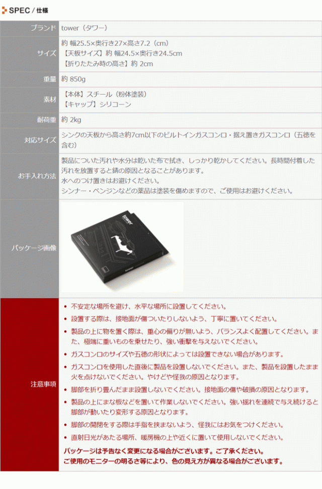tower(タワー)折りたたみガスコンロカバーそんな方にオススメしたいのが、こちらのガスコンロカバー!使っていないコンロの上に置くだけで、作業スペースを拡張できます!