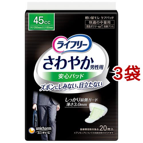 ライフリーさわやか男性用安心パッド45cc 男性用軽失禁パッド 26cm(20枚入*3袋セット)[軽失禁用品]