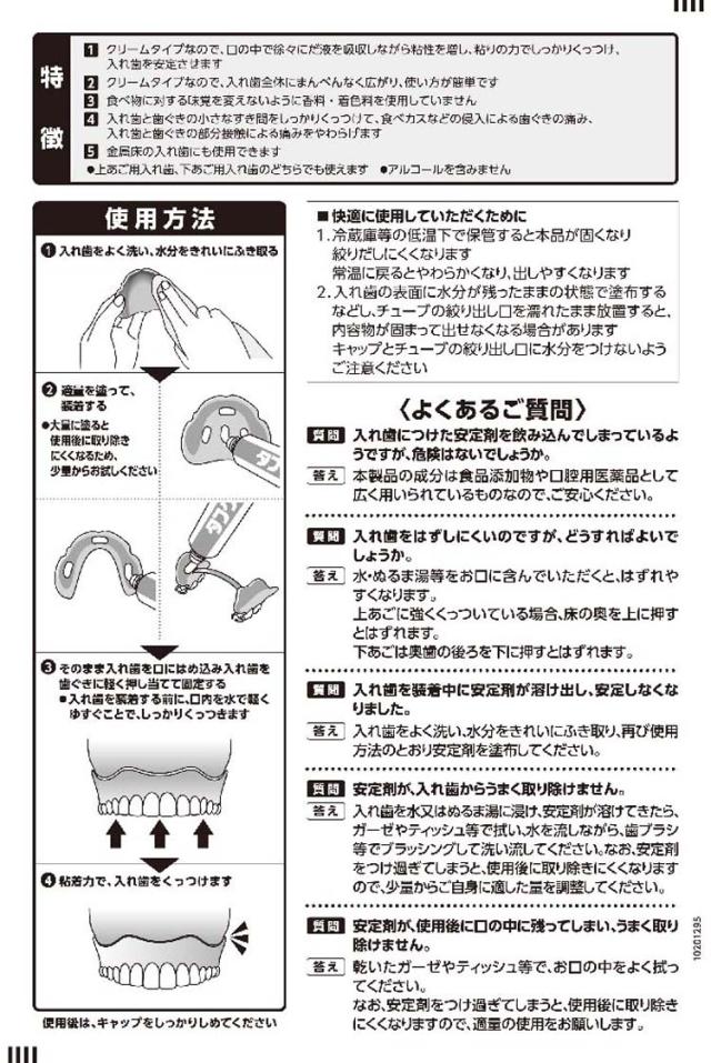 入れ歯と歯茎を接着するクリームタイプの安定剤