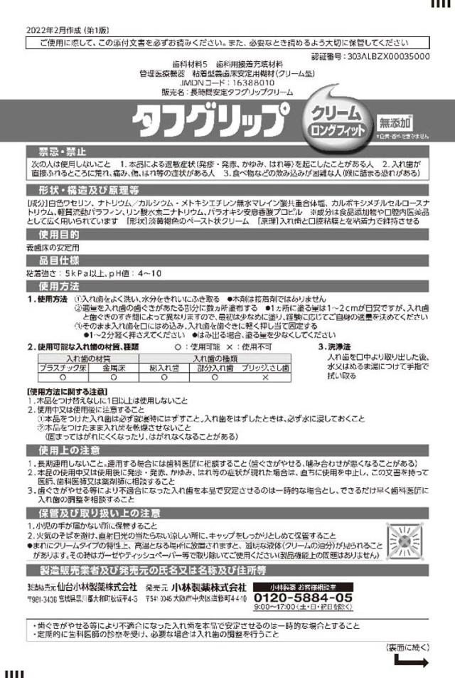 【タフグリップ クリーム 入れ歯安定剤(総入れ歯・部分入れ歯)の商品詳細】