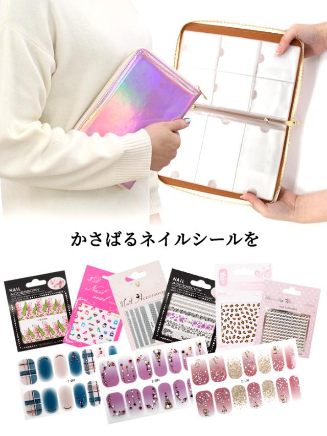 | 商品説明 | オーロラ加工が可愛い♪ ネイルシールやジェルネイルステッカーをすっきり収納! ネイルシールはもちろん、小さなネイルパーツも収納可能です♪ ポーチの側面には、ポケットがついているので ちょっとしたネイル用品、フォームやツイーザーなども 収納できる万能アイテムです★ |