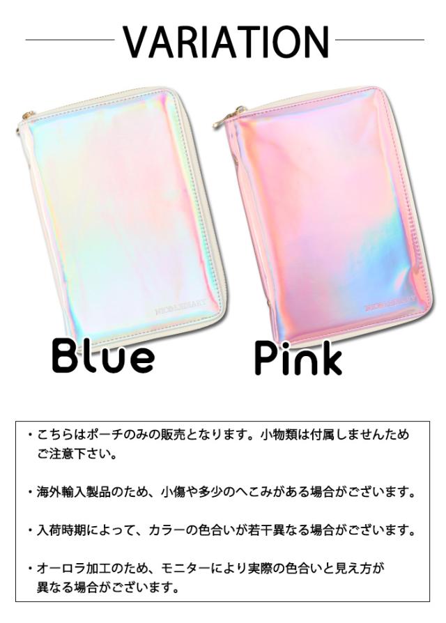 | 注意事項 | ・ポーチのみの販売となります。 ・入荷時期によって若干色合いが異なる場合がございます。 ・海外輸入製品のため、小傷がある場合がございます。 ・オーロラ加工の為、モニターにより実際の色合いと見え方が異なる場合がございます。 |