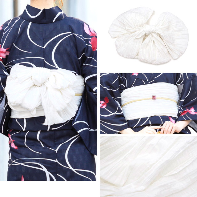 帯は、体に巻いて後ろで結ぶタイプの兵児帯です。