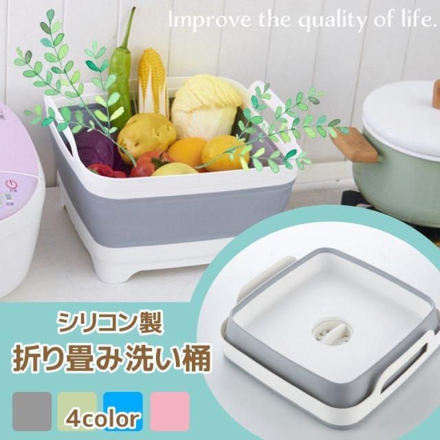 洗い桶 折りたたみ おしゃれ キッチン バケツ シリコン 四角 畳める 洗い 桶 大容量 台所 シンク 排水 食器 かご スリム ソフト 収納 水切り 排水口 軽量