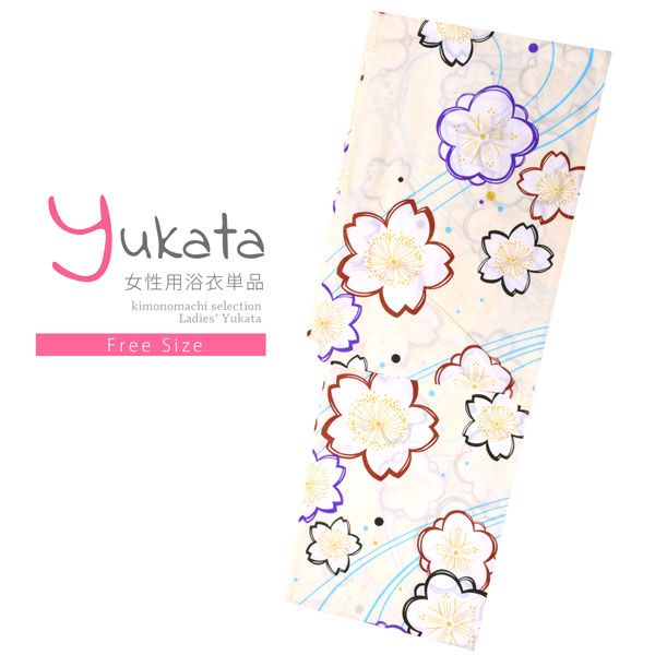 浴衣 レディース 単品「クリーム色、エンジ×黒 梅、桜」フリーサイズ レトロ モダン 大人柄 女性浴衣単品 女浴衣 ゆかた yukata 【メール便不可】
