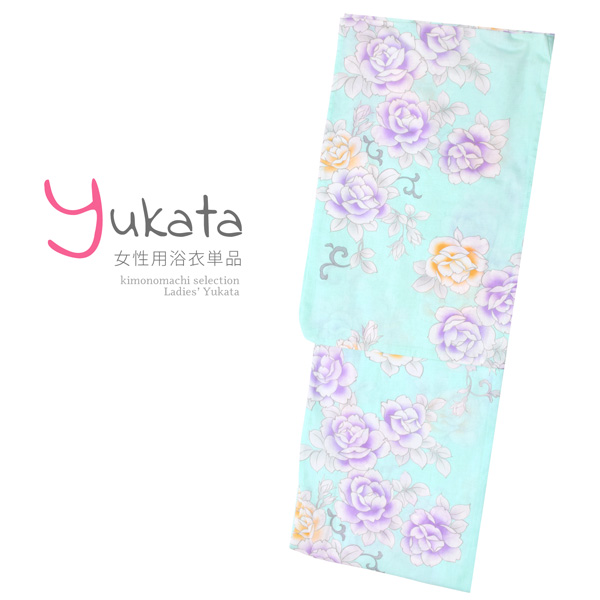 浴衣 レディース 単品「薄水色 薔薇」フリーサイズ レトロ モダン 大人柄 女性浴衣単品 女浴衣 ゆかた yukata 【メール便不可】