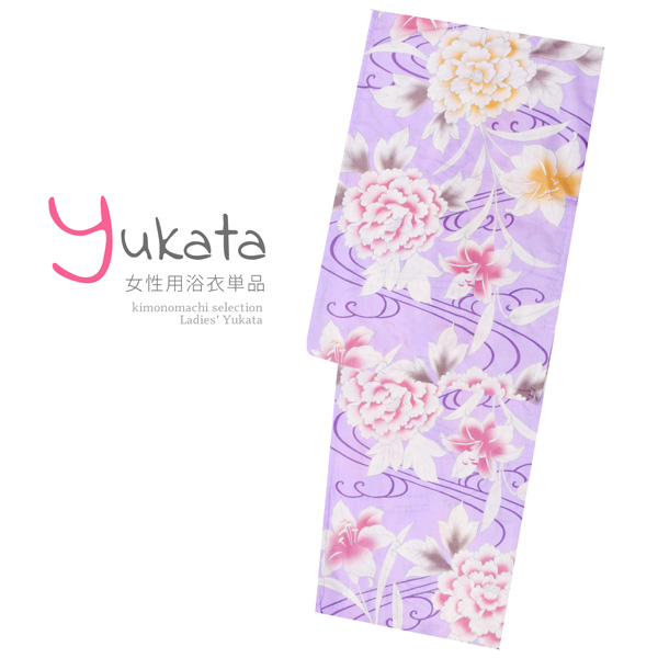 浴衣 レディース 単品「藤色 牡丹と百合」フリーサイズ レトロ モダン 大人柄 女性浴衣単品 女浴衣 ゆかた yukata 【メール便不可】