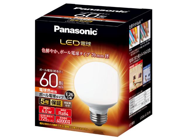 パナソニック LED電球 6.0W(電球色相当)E26口金 【品番:LDG6LG70W】