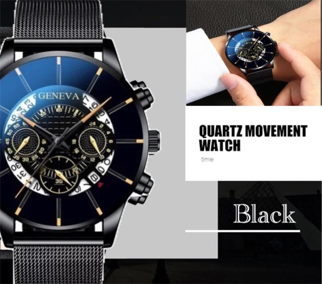 2 腕時計 時計 日付 カレンダー ステンレス メッシュ アナログ メンズ クォーツ ファッション時計 オシャレ ウォッチ ブラック