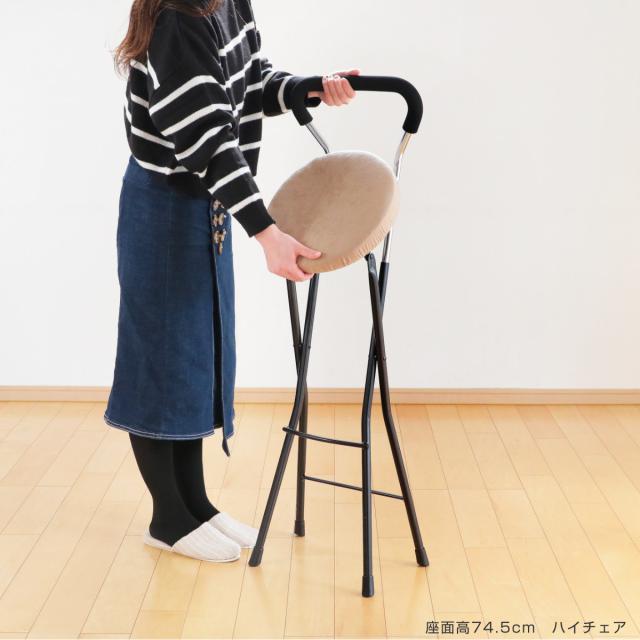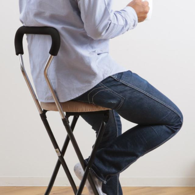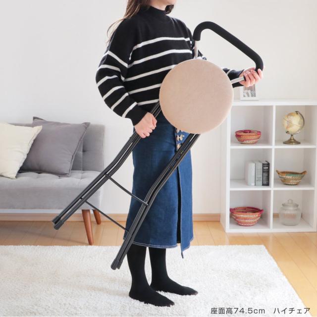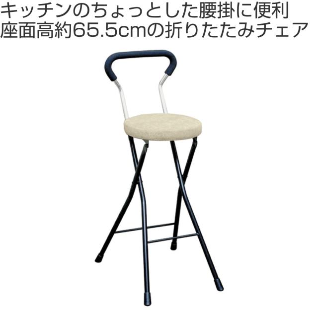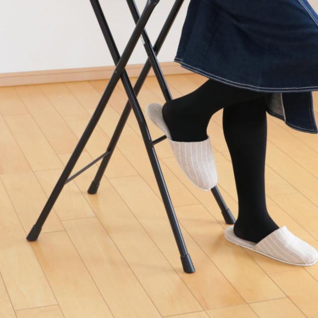 座面高約65.5cmのチェアは、キッチンのちょっとした腰掛に使いやすいサイズ感です。シンプルデザインなのでオフィスや事務所でも使用できます。折りたたみ可能で使用しない時はコンパクトに収納でき、急な来客時の簡易チェアにもピッタリでとっても便利です。