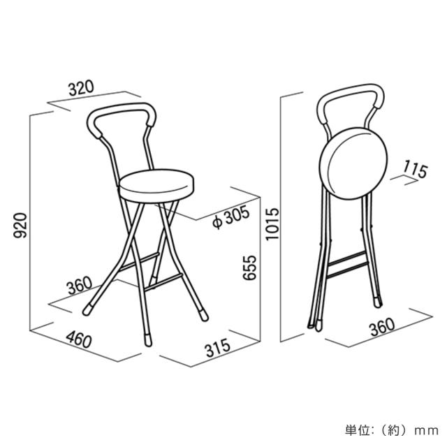 | サイズ | 約 幅36×奥行46×高さ92(cm) 座面高:約 65.5(cm) 折りたたみ時:約 幅36×奥行11.5×高さ101.5(cm) |