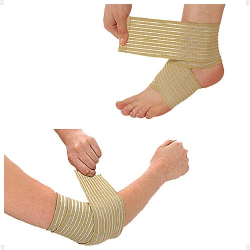 足首、ひじ専用バンテージタイプ・サポーター。テーピング感覚で簡単に使用可能。洗濯ができてくり返し使える高耐久性。伸縮性素材なので、固定力の調整が可能。