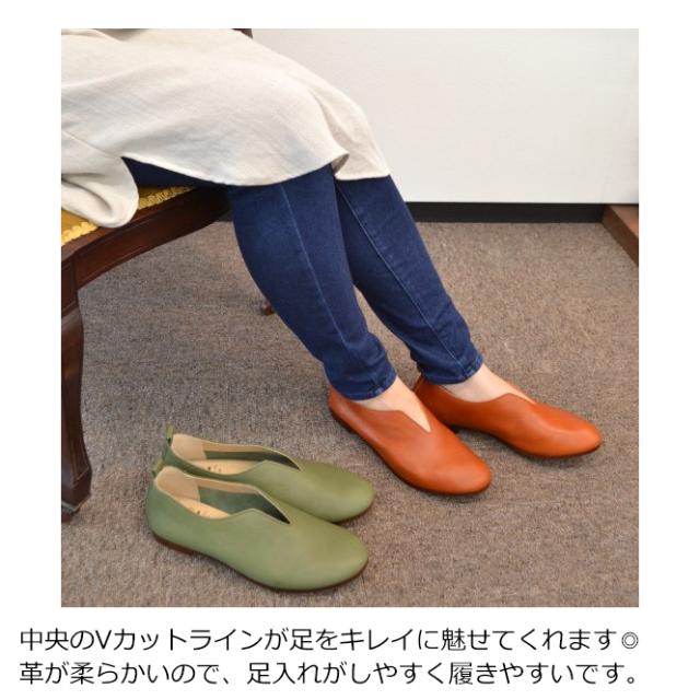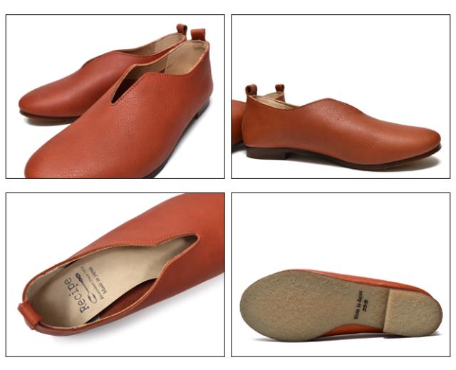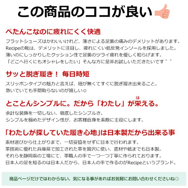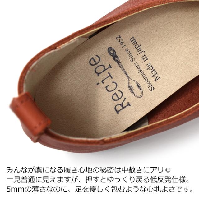 Recipe Vカット フラットシューズ レディース 本革 ぺたんこ靴 黒 橙 緑 歩きやすい 履きやすい 痛くない 疲れない レシピ 靴 日本製 幅広 RP-222 RP222 痛くない 疲れない スリッポン ぺたんこシューズ 歩きやすい 春新作 ポイント消化