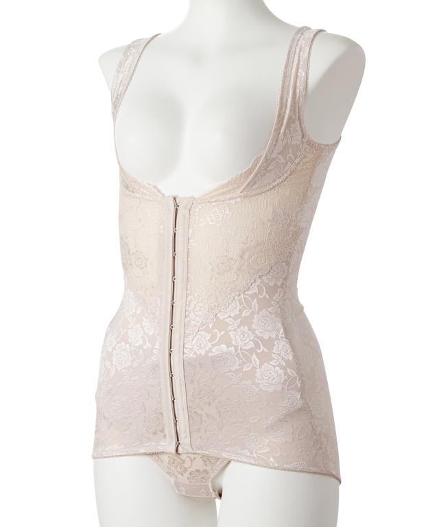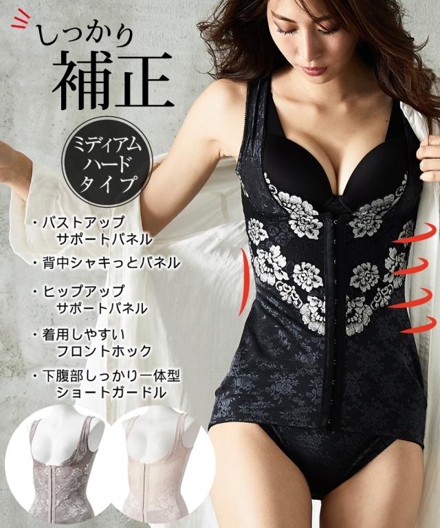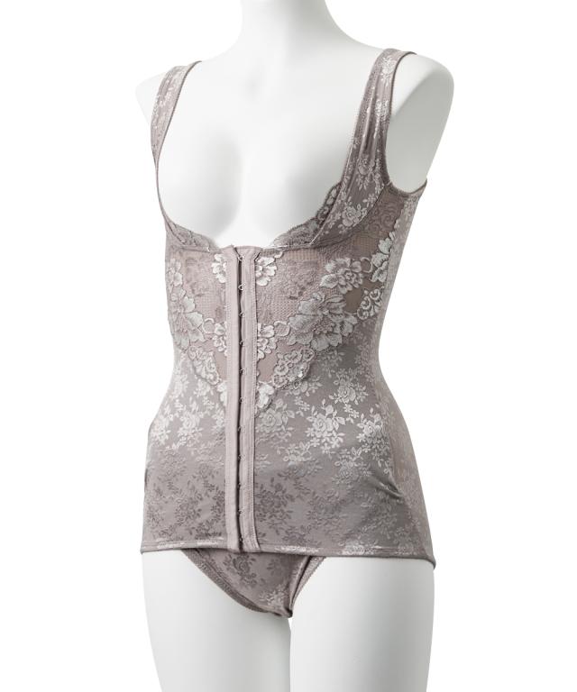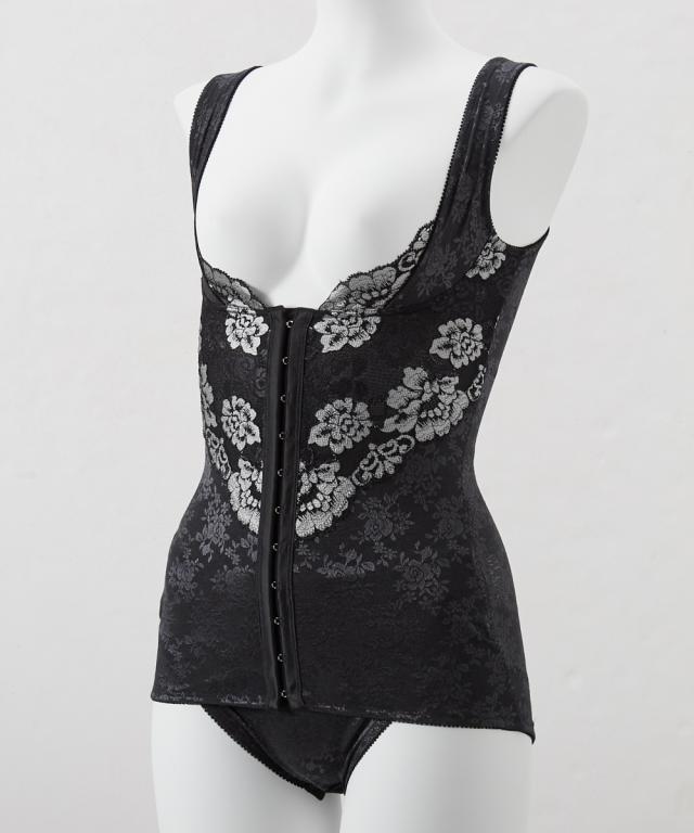 ボディスーツ しっかり 補正 バストアップ グレージュ/ブラック M/L 補整 インナー 肌着 レディース ニッセン nissen