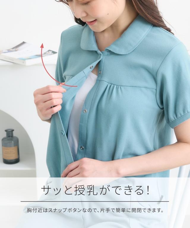 [keyword] ベビー服 ベビー用品 赤ちゃん 幼児 マタニティ 妊娠 大きいサイズ ゆったりサイズ プラスサイズ 半袖 五分袖 おしゃれ 体型カバー 二の腕カバー 産前産後兼用 マタニティ— ママ ベビー ナイティ ねまき 寝巻 ラウンジウェア リラックスウェア 部屋着 入院準備 ナイトウェア 夏 [comment] 長めの丈なので、これ1枚でルームワンピース感覚でOK!お手持ちのボトムを着用してパジャマとしてもOK!前ボタン開きなので、入院時の診察にも便利です。上から2〜4つ目はスナップボタンなので、赤ちゃんを抱っこしたまま片手でカンタンに開閉できます。一番上のボタンは普通のボタンなので、前が全開にならず、さっと授乳ができるのがうれしいですね♪またポケットが付いているので、スマホやティッシュなどの小物が入れられるので便利です。出産準備にもおすすめです。・産前〜産後に使う・授乳機能付・夏素材