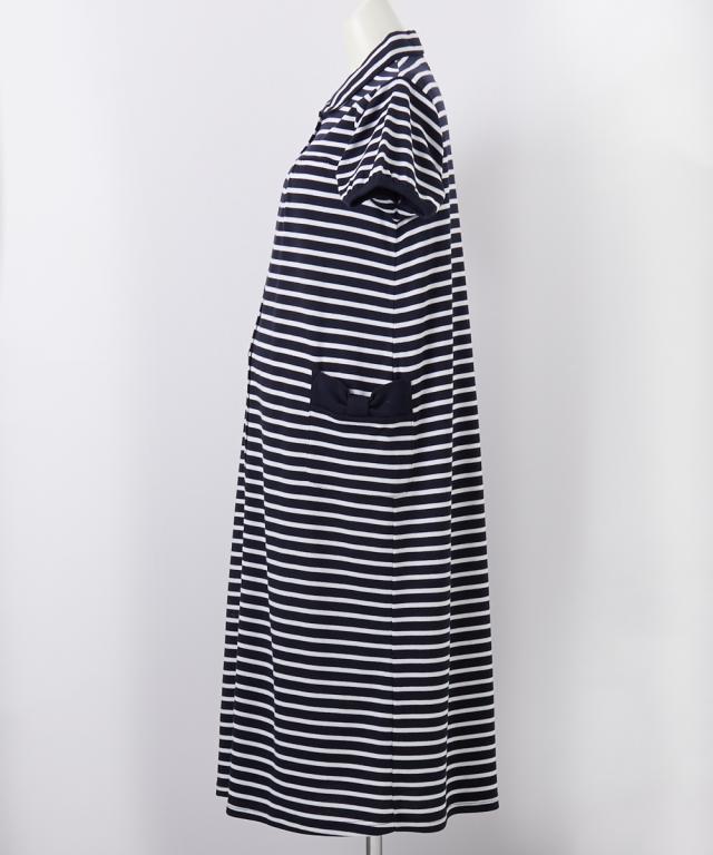 パジャマ マタニティ ママ 産前 産後 授乳服 スムースボーダー柄 前開き ネグリジェ LL/3L