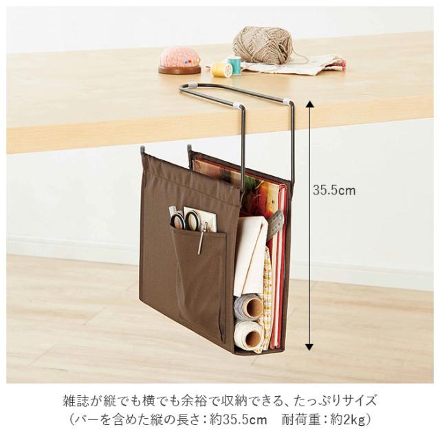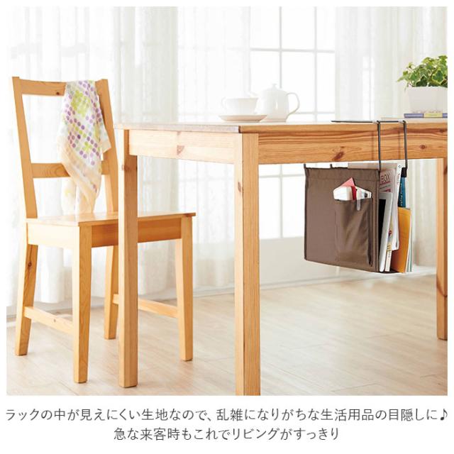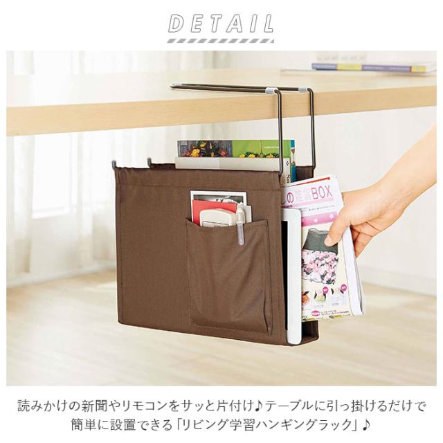 | 商品説明 | ・読みかけの新聞やリモコンをサッと片付け♪テーブルに引っ掛けるだけで簡単に設置できる「リビング学習ハンギングラック」♪ ・ラック両面にはポケット付き。よく使うペンなどの小物を収納すれば探す手間いらず♪使いたいときにサッと取り出せる♪ ・テーブルを傷つけないよう、ハンギングバーにはシリコン付きのストッパー付き♪ ・引き出しのない机やテーブルでも、これがあれば簡単に収納スペースができる♪ ・ラックの中が見えにくい生地なので、乱雑になりがちな生活用品の目隠しに♪急な来客時もこれでリビングがすっきり。 ・ラックの奥側にも生地があるので、荷物が向こう側へ抜け落ちない。 ・雑誌が縦でも横でも余裕で収納できる、たっぷりサイズ。(縦の長さ:約35.5cm。耐荷重:約2kg。) |