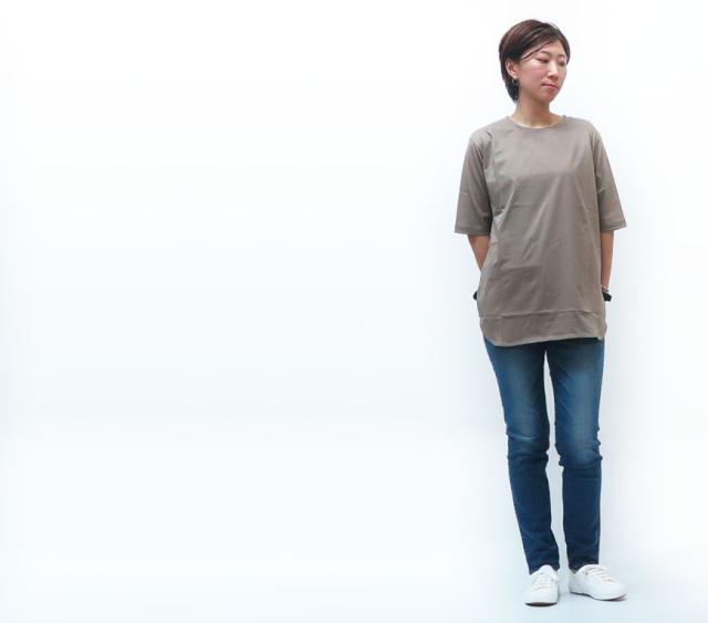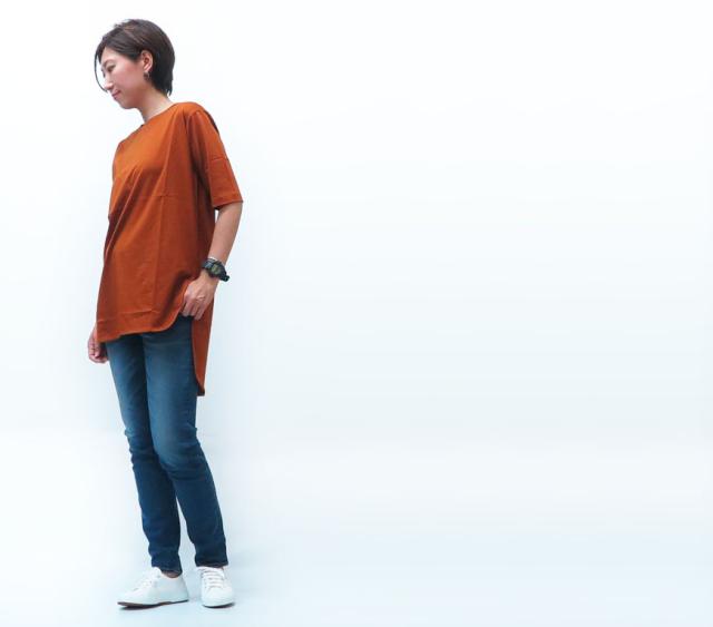 緩やかにカーブした前後差が印象的なチュニックTシャツ。